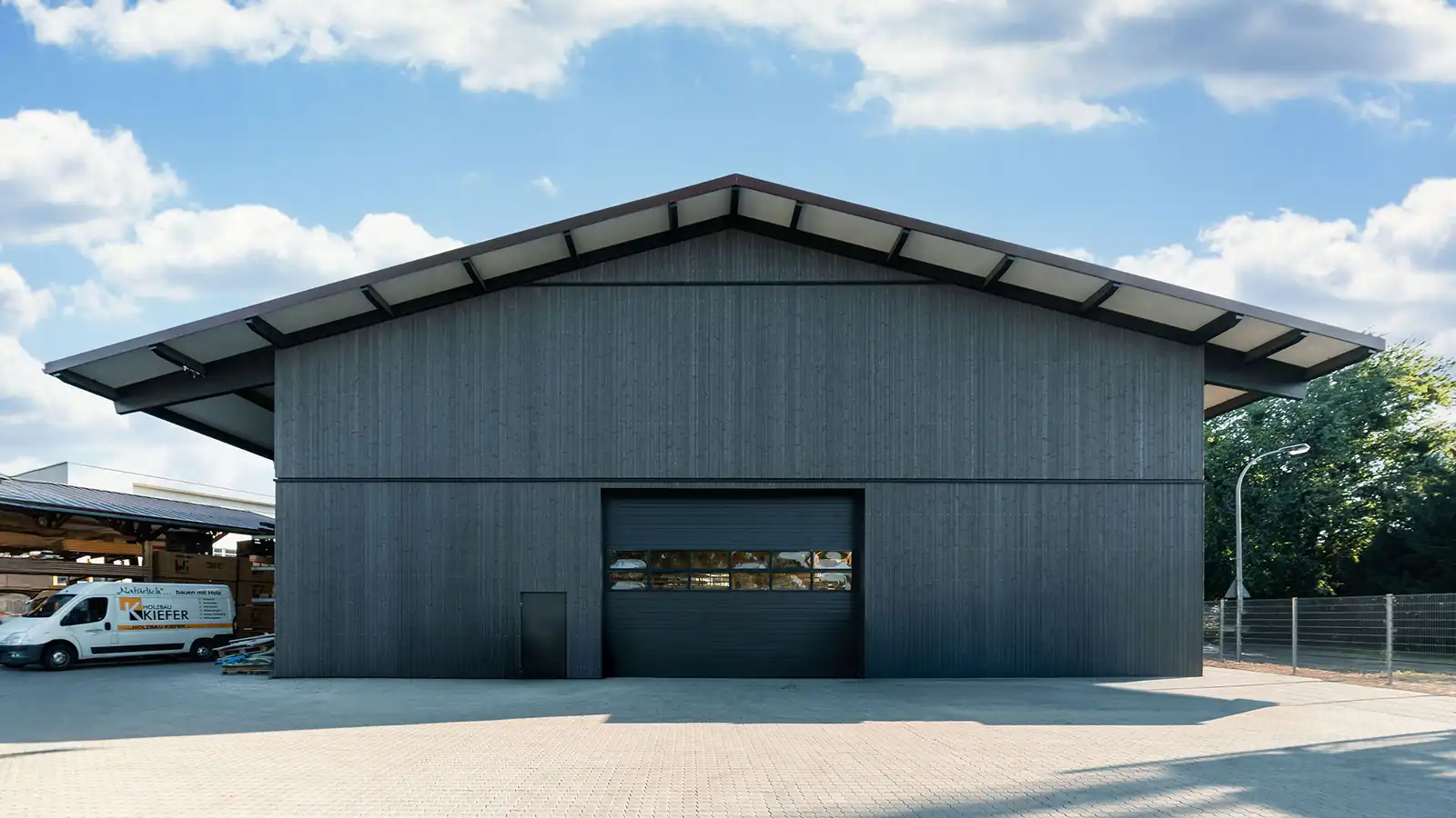 Für Holzbau Kiefer in Ortenberg entstand eine moderne Abbundhalle mit angeschlossenem Bürogebäude – umgesetzt in konsequenter Holzbauweise.