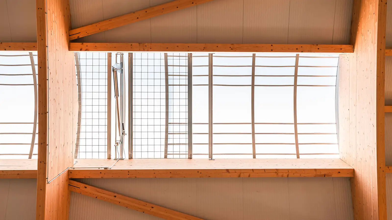 Insgesamt kamen 120 m³ Brettschichtholz zum Einsatz – das entspricht einer CO₂-Bindung von rund 97 Tonnen und zeigt einmal mehr, wie Bauen mit Holz aktiv zum Klimaschutz beiträgt.